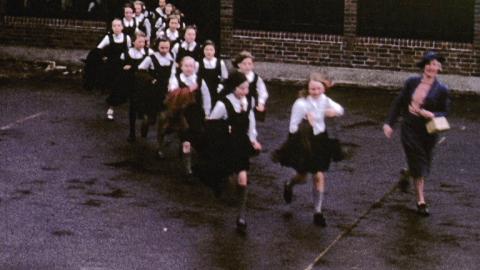 When the sirens wail, watch these children grab their gas-masks and dash to the shelters in this astonishing and sumptuous colour film about Air Raid Precautions at Hove School.