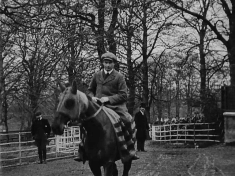 Ambush was unavailable (asleep!) on the camera crew's first visit, so they made do with shooting the stable lads jumping hedges, in a comic recreation of that amazing win (sadly this sequence has survived less well than the rest). Owned by the Prince of Wales (the future King Edward VII), Ambush II was the last Royal horse to win the National. In 2008, to coincide with that year's National, his skeleton was put on display at Liverpool's World Museum.