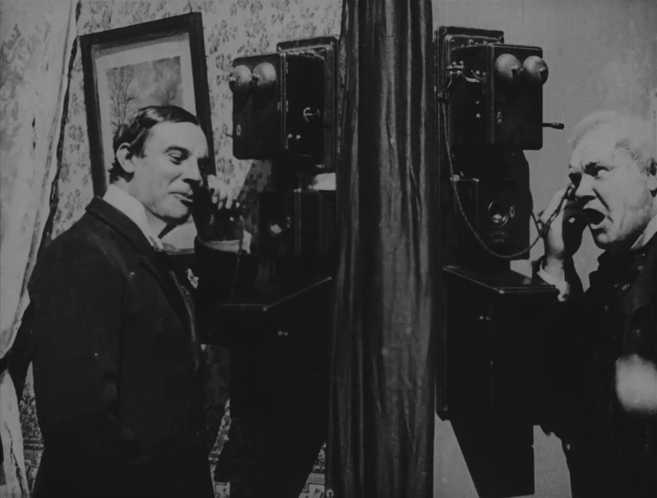 A young man's telephone call to his sweetheart is intercepted by her father, so instead of her kisses he gets the business end of the old man's umbrella. James Williamson was a clever filmmaker, who drew on his magic lantern show experience to create inventive use in films. In Are You There?, he divides the screen space in two to simultaneously represent both sides of the telephone conversation - effectively a 'split screen' effect achieved by means of a clever set. Genius.