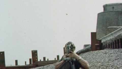 These scenes around Orford Ness filmed in 1960 are testament to the power of the shingle strip which, to this day, strives to protect a fragile ever-changing habitat from the North Sea. Semi professional photographer Leslie Gillham, seen with his camera, would often bring his family to this area on holiday from Hornchurch and involved his sons Roger and Geoffrey in this 2 camera shoot of the area including some wonderful close ups of seabirds, flora and fauna.