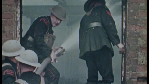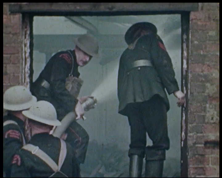 Aircraft drop bombs, spray mustard gas and machine gun 'nosey parkers' in this realistic mock attack on the city of Nottingham. The Nottingham ARP have fires to contend with, casualties to treat and buildings to make safe following the 'attack'. The Chief of Police in Nottingham, Athelstan Popkess, introduces proceedings from a derelict part of the Broad Marsh area of the city.