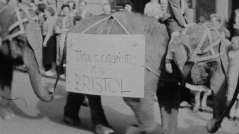 This unique amateur film captures a circus parade passing through Brighton's town centre. It features many circus performers, both human and animal, including elephants, llamas, camels, clowns, dancers, cowboys on horseback, acrobats and trapeze artistes. Cigarette adverts adorn many of the wagons and one even appears on an elephant!