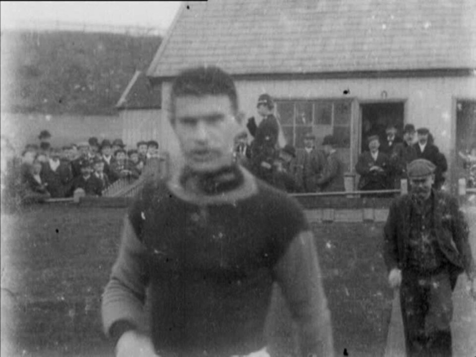 This is the earliest of two games filmed by Mitchell and Kenyon at Blackburn's Ewood Park. The negative was badly damaged, giving the picture a snowed-out look, but the competitive zeal is clear enough. Unusually for M&K's football films, the camera captures a (rather scrappy) home team goal, to the visible frustration of Villa players, who mount a furious protest. Blackburn went on to win 4-0.