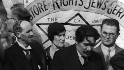 In 1933, the full horror of Nazi Germany’s anti-Jewish policies lay ahead but Britain’s Jewish community was acutely alert to the persecution already occurring and the yet greater dangers it presented. British Paramount News had cameras present and they capture a wonderful array of shots, from several well planned angles, of the speakers and the crowds – many of them East Enders who had walked from their homes to be present for this show of solidarity with Jews in Germany.