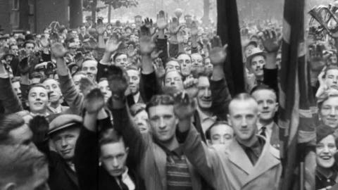 There are no Blackshirts here - uniformed marching was banned earlier in 1937 - but the sheer size of the march is disturbing. So is the unsettling mixture of people - many grimacing, menacing young men but also many women, older men and even children who would seem utterly ordinary in another context devoid of the paraphernalia and salutes. As indicated by the opening title, these are rushes, i.e. unedited camera material - almost certainly professionally shot, probably by one of the newsreel companies. Norman’s Film Service was a footage library that seems to have acquired discarded footage from labs or other sources.