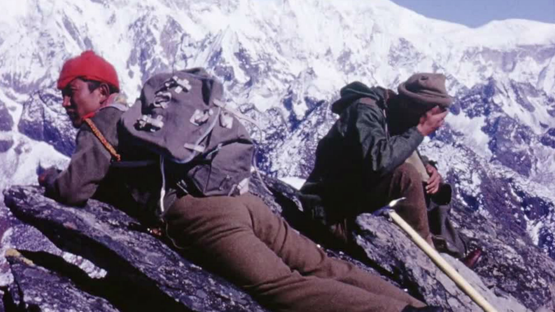 The film opens with general views and shows building works and Sherpas loading up. Scenes of threshing and a campsite, with Sherpas and huts. A settlement is then shown, including people weaving. Scenes of walking in towards the mountains and climbing in the foothills. More threshing scenes and the film ends with shots of the mountains and village.