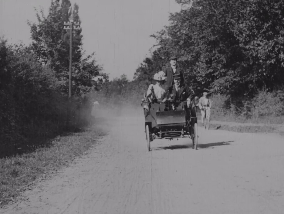 A Victorian nightmare is brought to life in this bracing film from Cecil Hepworth, which shamelessly exploits contemporary fears about 'horseless carriages'. A horse-drawn cart travels sedately down a country path, easily avoiding the camera/audience. But when a car (an ersatz contraption 'of dog-cart design') follows the same route, it crashes straight into the lens. At the moment of impact, the screen turns black and fills with the sarcastic last words: "Oh mother will be pleased!"