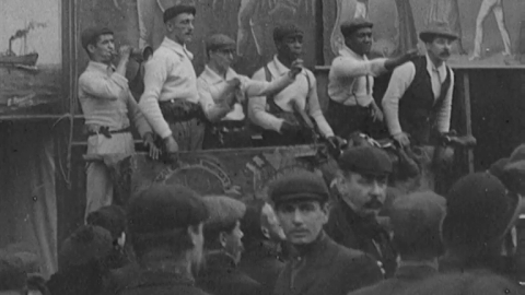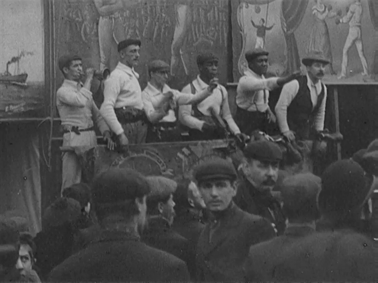 Hull's was Britain's largest fair, held annually since the Middle Ages. This film gives a real feel for the atmosphere of its spectacular shows - Bailey's American Circus, Bostock and Wombwell's Menagerie and Randall Williams' Cinematograph. Two black men are among the fighters luring the punters to Hughes' boxing booth. Alfred Hitchcock's 1926 boxing film The Ring has a strikingly similar scene.