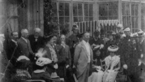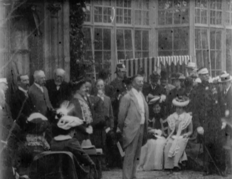 This is a rarity among Mitchell and Kenyon's surviving films: an audience with a true political giant. In 1902 Chamberlain was basking in the glory of victory against the Boers, in what was widely called 'Joe's War'. We don't hear what he has to say, but there's no mistaking the enthusiasm of his audience. As a bonus, the camera gives us a tour of the gardens of Chamberlain's magnificent Highbury.