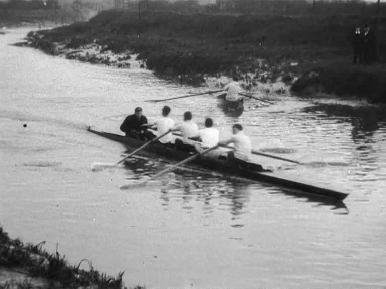 This record of exercise and tomfoolery on the River Hull at Stoneferry won praise from the Hull Daily Mail when it screened at The Circus variety theatre on Anlaby Road. The ladies present may have particularly enjoyed the mocked-up 'accident': one rower tumbles flamboyantly out of his skiff into the water and swims wildly to shore - his wry grin, wet t-shirt clinging to his chest, is priceless.