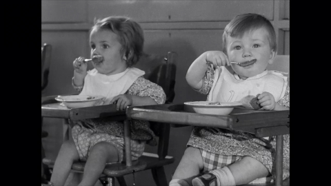 As the demand for female labour grew so did the need for day nurseries, and good friends. Here, stay-at-home mum Alice looks after her working friend's daughter, Betty, along with her own son, Tommy. Welfare centres like the one depicted in this film were a vital lifeline for families, both medically and socially. The down-to-earth commentary was supplied by Londoner Herbert Hodge who was a BBC radio personality, taxi driver and author. This government film is a public record, preserved and presented by the BFI National Archive on behalf of The National Archives, home to more than 1,000 years of British history.