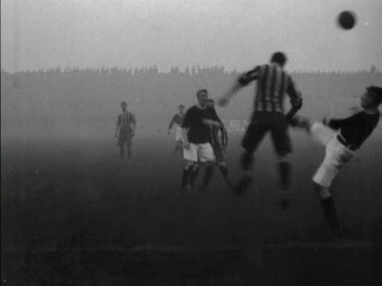 The score finished 1-0 to the Magpies in this First Division football match. Despite having three cameras present on the day, Mitchell & Kenyon's operators missed the goal, and the hand-cranked cameras sometimes struggled to keep up with the action in a hard-fought match. But the shots of grinning supporters, packed on to the terraces in their flat caps and bowlers, more than compensate.