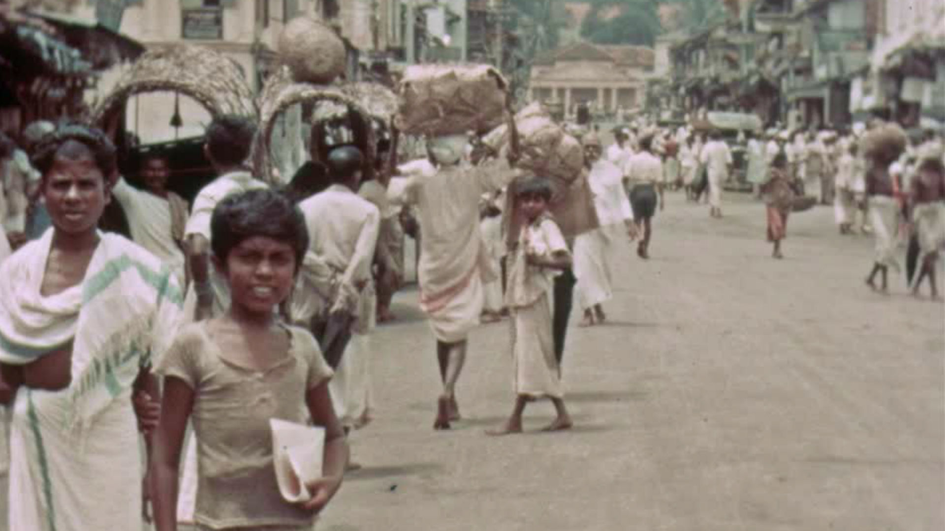 A mixture of b/w & colour film (captioned, without sound) taking viewers around the world in1937. Includes Peking, with crowds watching a dragon procession to celebrate the coronation of King George VI. Scenes in Ceylon (Colombo & Kandy), plus a visit to the pyramids. The latter scenes show famous London landmarks, footage of a Northolt Race Meeting and the Aldershot Tattoo.