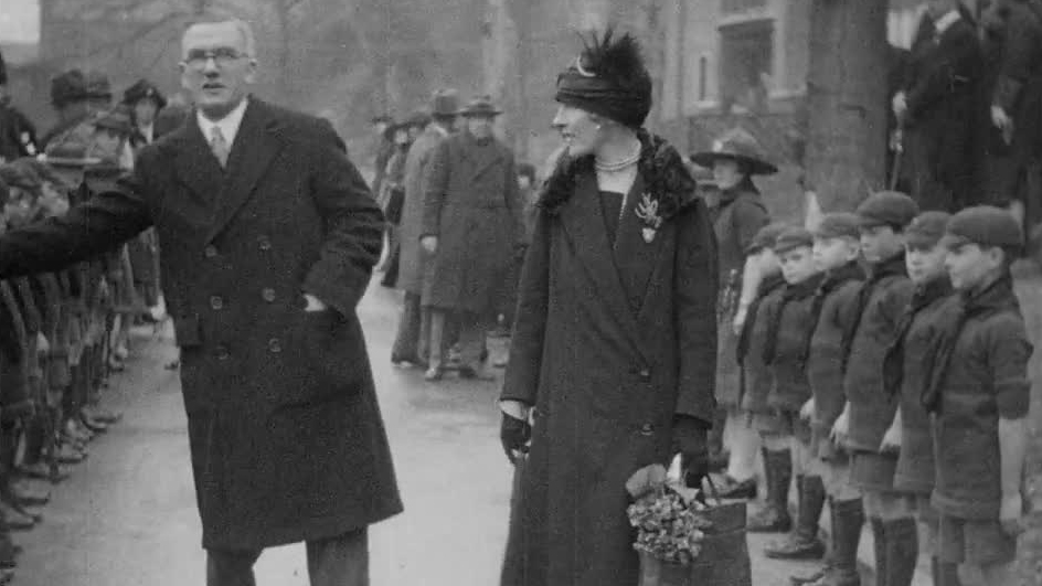 Countess Haig, beaming, opens a block of flats for disabled ex-service employees at the Poppy Factory in Richmond.