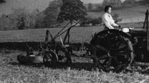 Ploughing done scientifically produces a work of art. A young woman takes on the challenge of a field that has a ridge and furrow, a steep slope and wet patches. She marks it out with poles which enable her to plough it in the most efficient manner. This film, part of a series, was produced during WWII by the National Institute of Agricultural Engineering, based at Askham Bryan, near York, to train members of the UK-wide, county-based War Agricultural Executive Committees.