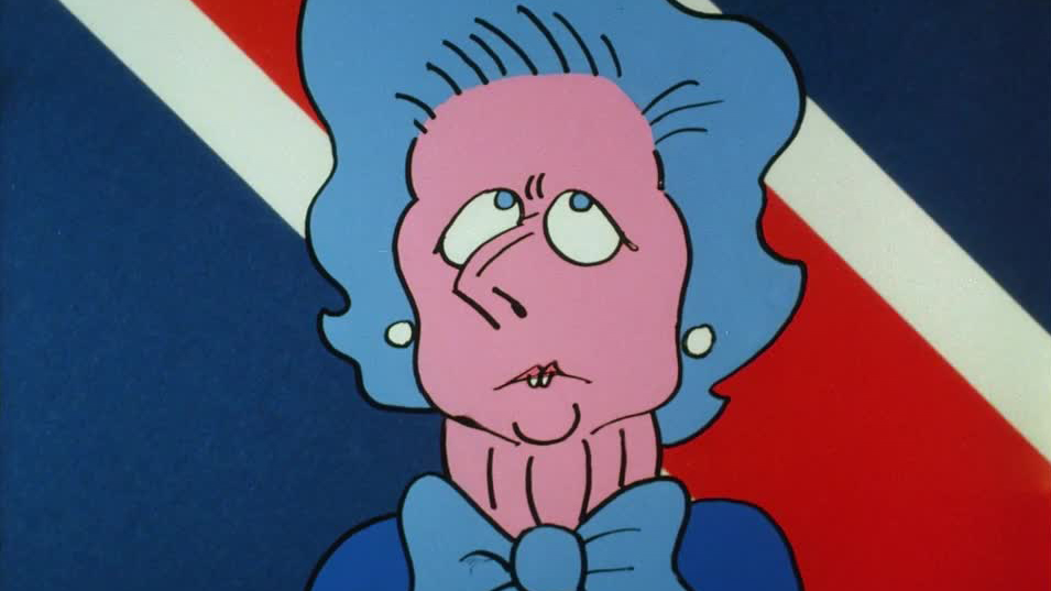 I think it’s fair to say that Bob Godfrey was not a big fan of Margaret Thatcher. Long before he brought Roobarb and Henry’s Cat to life, Bob made the independent short Polygamous Polonius that told a nonsense tale of the courtship of a matronly art lecturer. A quarter of a century later he lifted the soundtrack and remade the film almost shot for shot but with a very different message. The male suitor now becomes a “miner” nuisance in Thatcher’s lecture on Britain, bringing barbed reminders of the political battlegrounds of the 1980s.