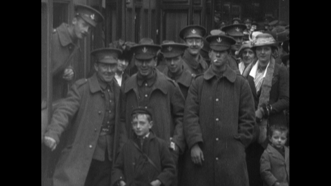 Moving record of relatives waving a fond farewell to departing loved ones during WWI.