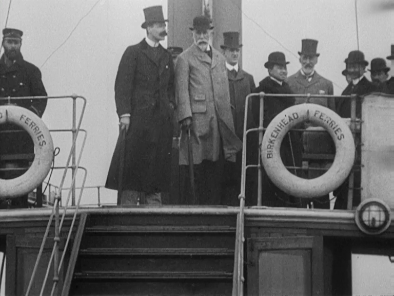 Crown Prince Vajiravudh of Siam (now Thailand) was educated in Britain, first at Sandhurst from 1892 and then at Christ Church College, Oxford. He may still have been at Oxford when this film was taken. The Prince was on a visit to Port Sunlight with the radio pioneer Guglielmo Marconi, and they would have taken this route across the Mersey to the nearby New Ferry on the Wirral Peninsular.