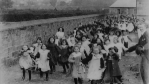 Mitchell & Kenyon captured over twenty of these school films, but this example is more anarchic than most. Where others show pupils in a more-or-less orderly march presided over by their stern-faced teachers, here the participants race past at almost full pelt. The effect is a joyous sense of freedom, and it's hard not to join in with the wide smiles on the children's faces.