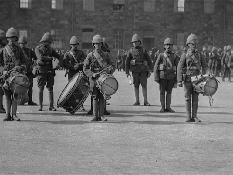 Just back from service in the Boer War, the East Lancashire Regiment parades in the grounds of its Fulwood Barracks in Preston before a party of local dignitaries and others. Afterwards, the pith-helmeted militiamen relax and mingle with their audience. These beautifully crisp images were assembled in something of a jumble, suggesting they may be offcuts left over from another film.