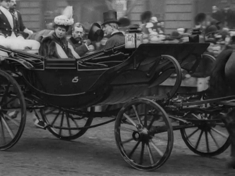 The new King's visit to Manchester in March 1902 was a major occasion for Owens College (now the University of Manchester). The local press reported the presence of "not a few cinematographers" - evidently including Mitchell & Kenyon's cameraman - as well as "a number of photographers", some of whom can be spotted in this film. We catch a brief glimpse of the King passing in an open carriage.