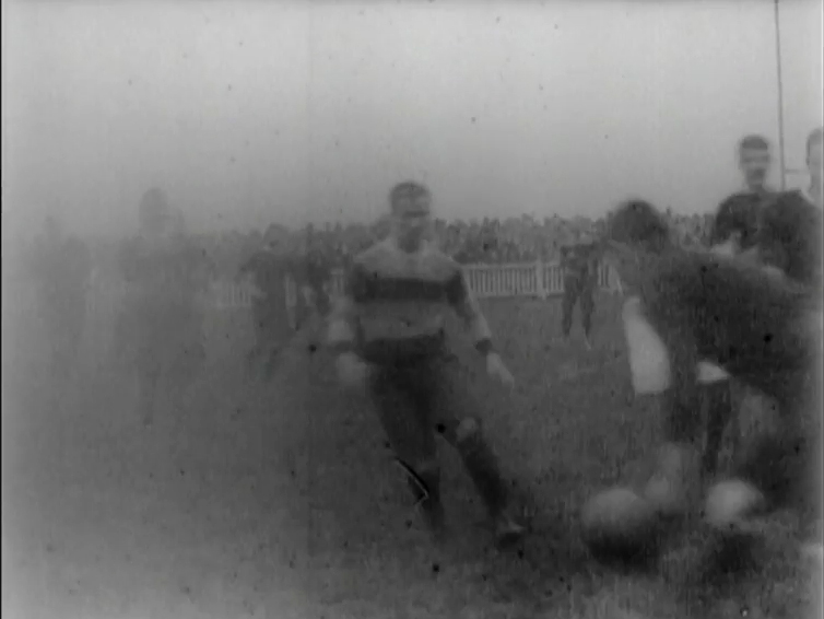 Just a few minutes long and sharing their screen time between the players and the crowds, Mitchell and Kenyon's rugby films are more an evocative record of the occasion than they are a collection of 'highlights', which might puzzle those weaned on today's unblinking TV coverage. This film may not show any tries, but there's plenty of action and all the atmosphere of a thrilling sporting rivalry.