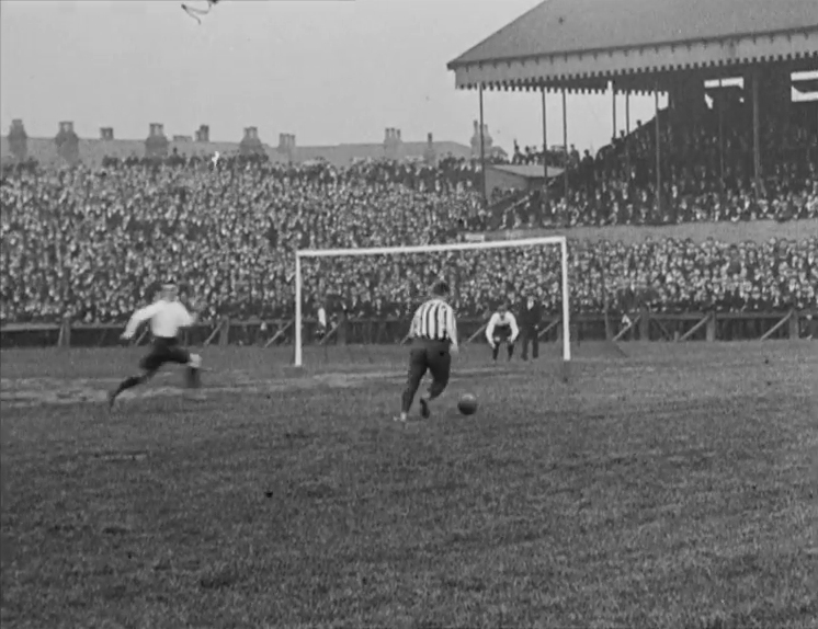 Its sparkling images of players and fans make this one of the best of Mitchell & Kenyon's football films. Long, slow pans across the terraces capture the intense concentration etched on every face as Sheffield United, in stripes, lead the attack. The camera missed United's winning goal, but we do see one of the game's first celebrities, United goalkeeper William 'Fatty' Foulke.