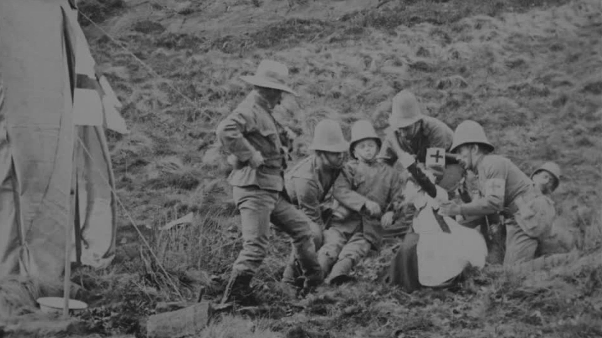 The horrors of the war in South Africa - as filmed in the countryside around Blackburn. The Lancashire-based Mitchell & Kenyon, who made a number of similar re-enactments around 1899-1900, twist the knife in this short film. A nurse welcomes a number of wounded soldiers to a Red Cross tent. But this is no ordinary scene of Army life, instead this tightly presented little narrative includes mounting tension (one bombing attempt fails, the second proves successful) and an emotional twist (the nurse who greeted the wounded at the beginning is among the fallen at the end).