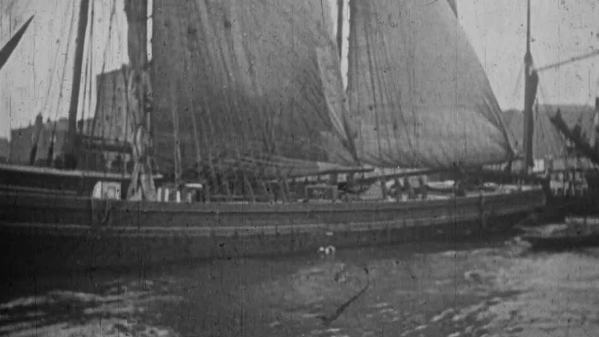 Unlike the more bucolic scenes filmed higher up the Thames in pleasant towns like Windsor or Maidenhead, this film was taken in Rotherhithe and provides a glimpse into working life on the Thames. The river is heavily populated with a number of boats, of all shapes and sizes, with the warehouses of Rotherhithe visible in the background.