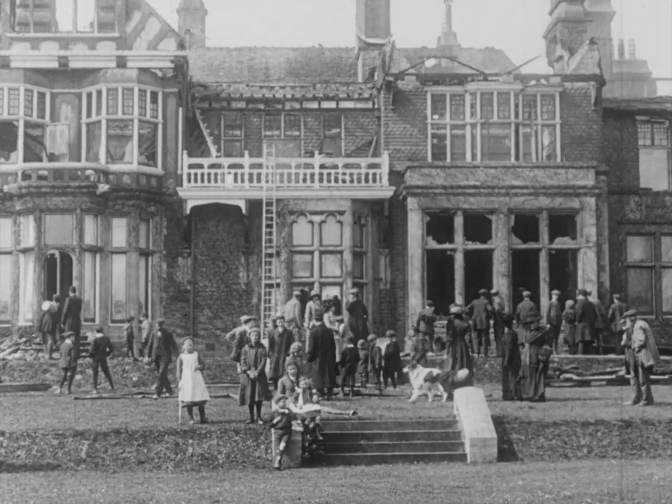 This Pathe newsreel captures the aftermath of an arson attack on Levetleigh House, St Leonards, former residence of Conservative MP for Hastings and Rye Arthur Du Cros. The attack was orchestrated by suffragette Kitty Marion, by way of a protest against the politician's staunch resistance to women's suffrage.