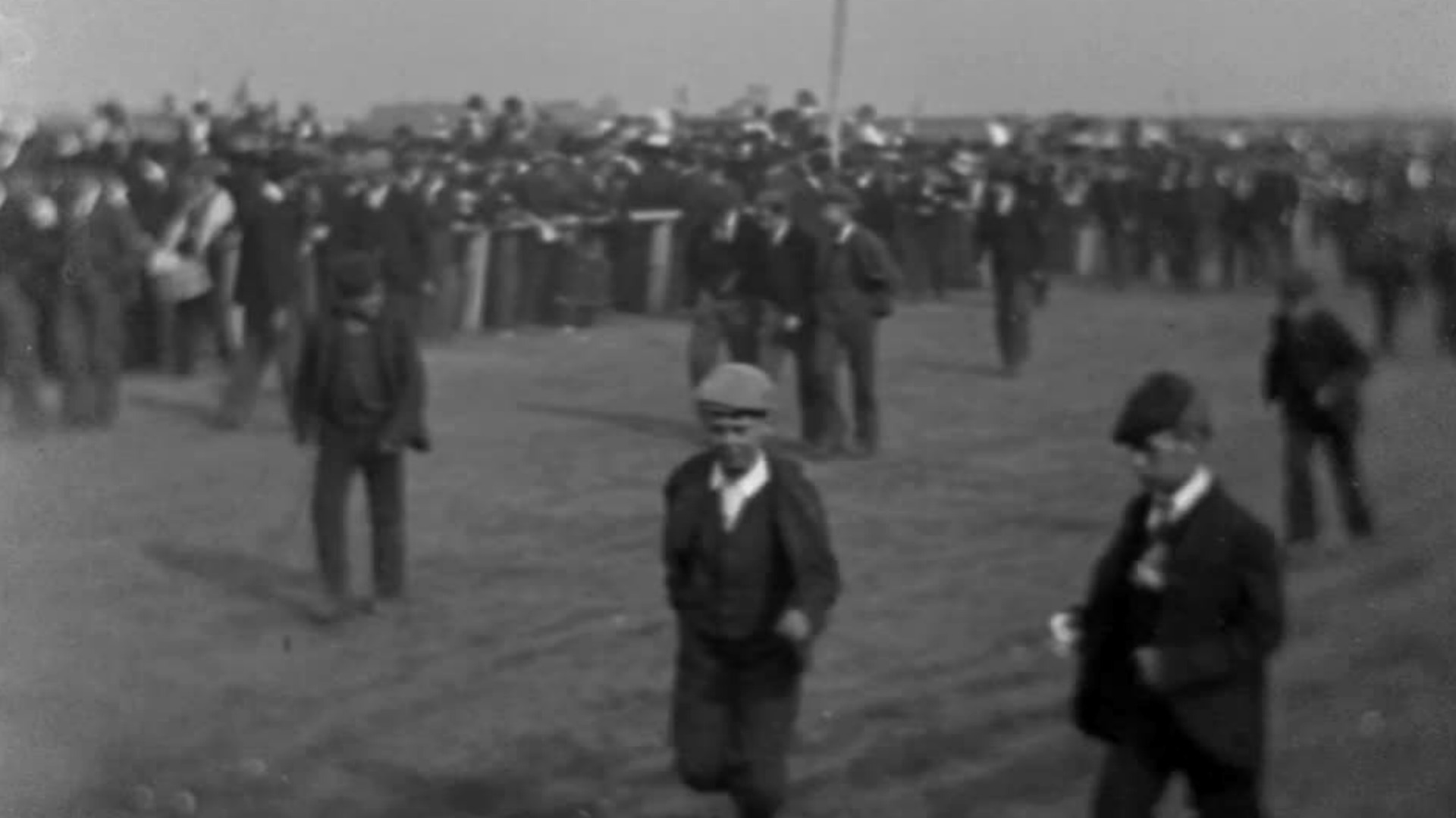 We have George Henderson, a Stockton-on-Tees exhibitor and collector, to thank for some of our earliest films. This film, purportedly of Stockton Races in 1896, could well be what it says, though we have no corroborating evidence. Either way, it’s an interesting view taken of the final race of the day with the traditional invasion of the track by the punters.
