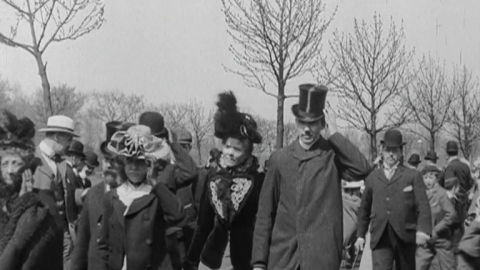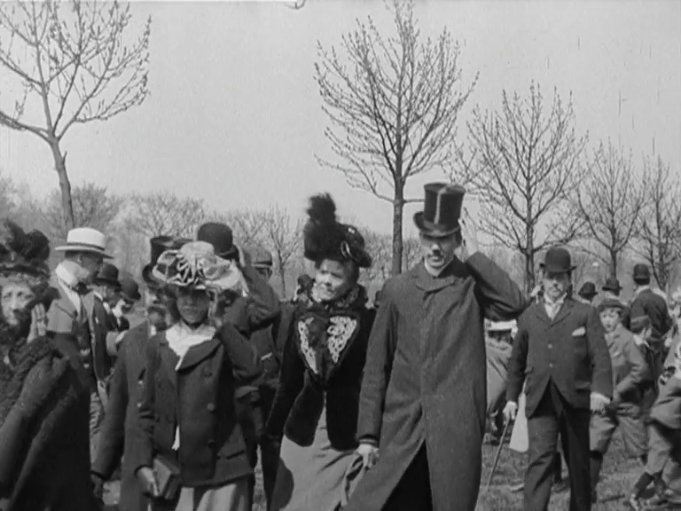 The occasion of this parade isn't known, but it was clearly a day for dressing up. The cream of Edwardian Hull society has turned out, the gentlemen in toppers and bowlers and the ladies in their finery, including some resplendent hats. It's a grand day for it, if a tad windy... As ever, Mitchell & Kenyon's camera captures each face with fantastic clarity.