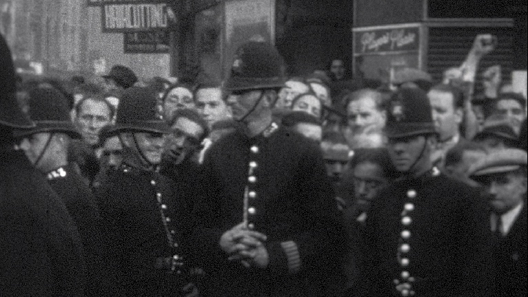 The Battle of Cable Street took place on Sunday 4th October 1936 in London’s East End, an area of the city that had a large Jewish population. Lewis Rosenberg’s film shows the large crowds that had gathered to prevent a provocative march through the area by Oswald Mosley’s British Union of Fascists. The government sent large numbers of police to escort the BUF along their route through Stepney and to keep anti-fascist demonstrators from disrupting the march. However, the march was abandoned after violence between the police and the demonstrators broke out resulting in more than 150 arrests.