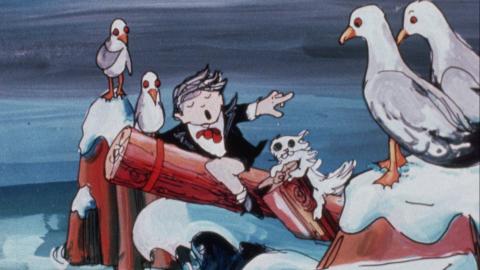 A cartoon boy soprano and his affectionate cat weather the storms prompted by the wintry words of traditional Celtic and Northumbrian folk songs and a Christmas carol. Modelled on animator Sheila Graber’s nephew and pet cat muse Whitey, this duo’s child-friendly adventures are in a rich tradition of screen animation, saturated with feline fur and whiskers.