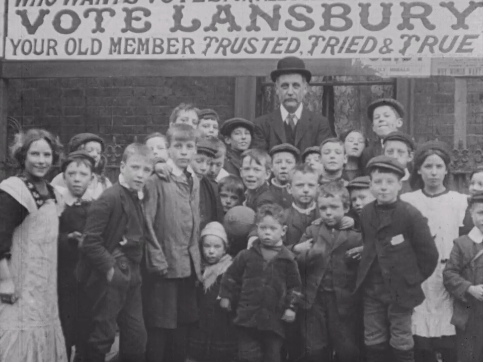 Was the battle for women's votes fought only by women? No, some men actively supported women's suffrage too. Labour MP George Lansbury, seen here surrounded by youngsters with his campaign slogan, 'Trusted, tried & true', resigned his seat in Bromley and Bow so that he could use the 1912 by-election as a platform to promote his belief in equality. His party declined to support him, and he stood instead as a Women's Suffrage and Socialist candidate, losing to Unionist Reginald Blair by 751 votes.