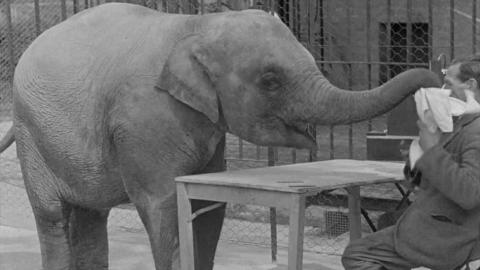 Shot on location at Dublin Zoo and Chessington Zoo, and showcasing various exotic animals, the film also features footage of noted German animal trainer Hans Brick. He's seen here performing a restaurant routine with Annie the elephant.