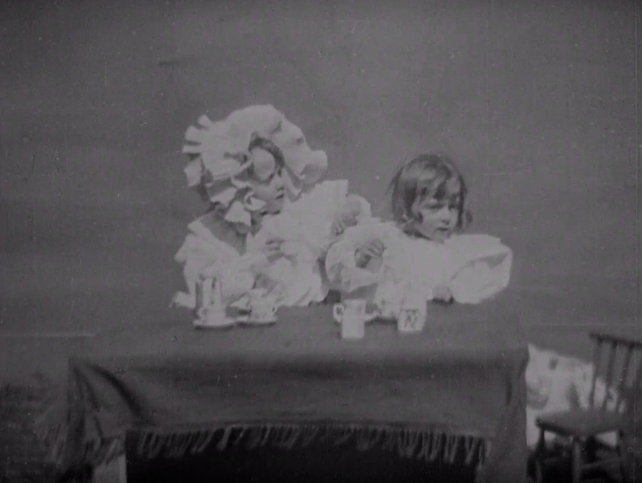 The behaviour of small humans hasn’t changed much in 120 years; they are very cute. Here, the simple set directs our attention to the actions of the girls, one of whom is being bossy and hits the other but then kisses her better. Like RW Paul’s other 1896 films, this one was likely shot on the roof of the Alhambra music hall.