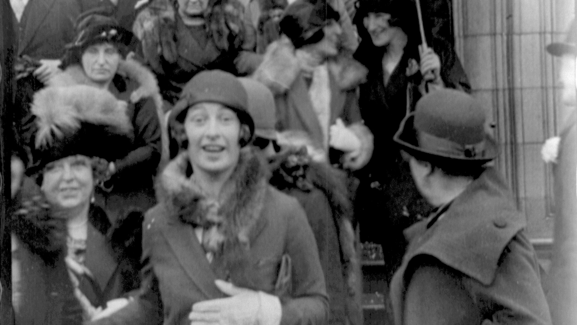 A fashionably dressed bride and her equally stylish bridesmaids brighten up the gloom of a wet autumn day in this delightful short film, shot at the South Manchester Synagogue. Never mind the weather, this is a very happy occasion for the newly wed Laurence and Lily, smiling through the shower of confetti, and for their families and friends, enjoying the attention of the camera.