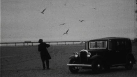 Lancashire's Fylde Coast resorts have year-round appeal, as we can see in this reel from the early 1930s. The seaside is not just for swimming and sandcastles; you can feed seagulls at Southport, or slide down sand dunes with your dog, or stroll across Blackpool's wide beaches on a cold day. And, at the time this film was shot, this coastline had many fine piers to enjoy, whatever the weather.