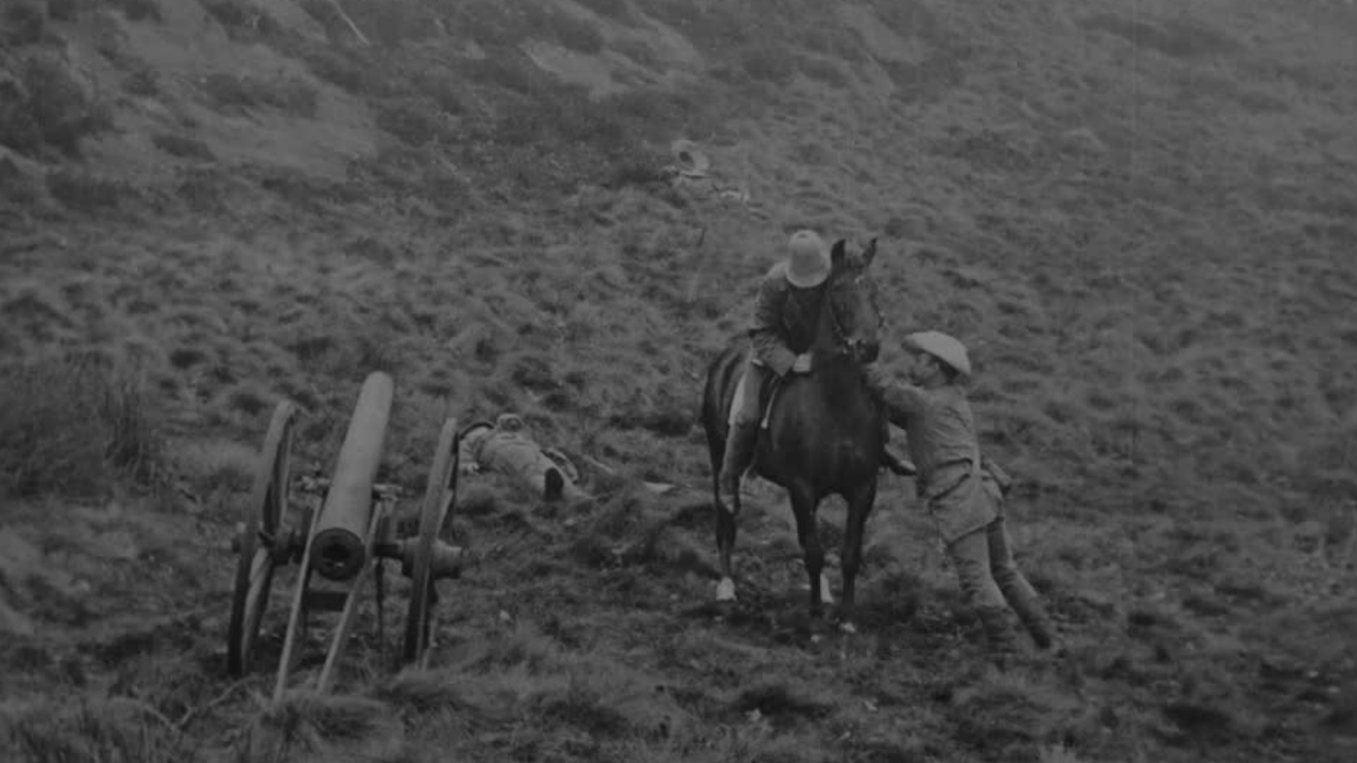 This particular piece of footage shows just how far some filmmakers were willing to go to give audience what they wanted - including a very early example of post-production special effects. Two explosions on the hillside are created by scratching off part of the emulsion from the original negative. Mitchell and Kenyon were particularly associated by film historians with these kind of 're-enactment' films, until the mid-1990s discovery of hundreds of their local non-fiction films shot mainly around the north of England.