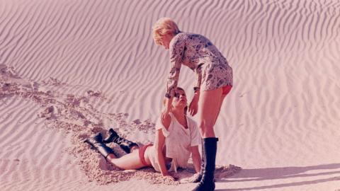Alain Robbe-Grillet’s first film in colour finds him audaciously marrying his theories of narrative experimentation with a highly sensual visual style to create one of his most distinctive works. It charts the descent into depravity of a group of bourgeois students, who enter a bizarre sado-masochistic desert realm after taking a mysterious drug called “fear powder”. As their realities distort and their interrelationships diverge into master-slave hierarchies, Robbe-Grillet’s narrative becomes ever more fractured and fevered.